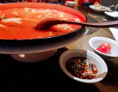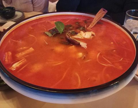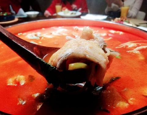 工作日午市过去虽然上座率蛮高但还是不需要等位的。翻翻菜单,感觉品种不多,感兴趣的更少,也就随别人点吧。餐厅环境太暗,个人不喜欢,服务员忙到上了第一个菜也没时间给我们倒杯水,后面加水更是千呼万唤。 点了几样菜让我觉得好吃的居然只是一碗牛肉粉,但也没到出色程度,好一点的快餐店也能做出的水平。酸汤鱼应该是招牌特色吧,但是这一盆显得空荡荡的汤,而且入口一点不浓郁,太稀了,拌白饭不错,但我宁可选满大街的酸菜鱼去吃吧。爆浆豆腐没有爆浆啊,就是煎嫩豆腐而已。葱爆牛肉用的是洋葱哦,但至少牛肉的量比回锅肉多,回锅肉那菜简直应该更名为大葱炒大蒜。