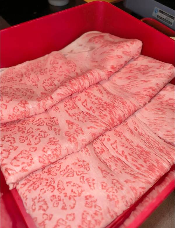 采用油脂均匀的和牛,搭配蘸料嫩滑可口。