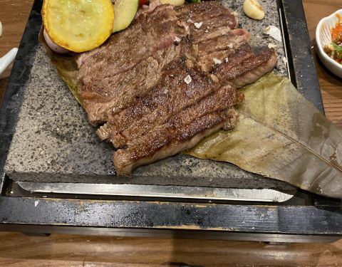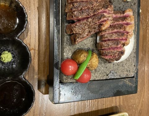 环境:很典型的日式料理环境,进门有日式庭院装饰,还有一副武士盔甲;包厢很安静。 服务:包厢内有服务铃可以叫服务;安静不打扰但又随时可以来服务;服务员会帮忙烤肉;上菜也很快; 「特上牛小排」牛小排,烤得可以根据个人喜好生一点还或熟一点,但不知是否是石板烤的原因还是食材原因?烤出来居然有点柴,没有想象中好吃。 「香煎牛舌」厚牛舌,还行 「澳洲m7级别眼肉」嗯,肉还行,就是感觉在日料店吃西餐 总体评价:感觉很高档的日料店,但口味没有达到预期。
