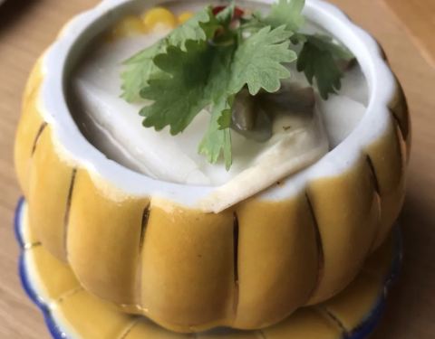 「椰肉炖母鸡」和海南椰子鸡较为不同,里面有香茅、小米椒等调味料,整体口味个人不是很能接受,偏刺激