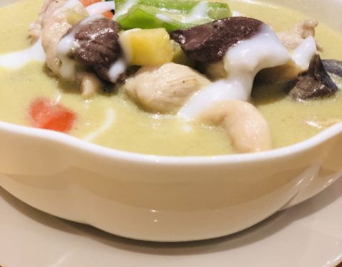 店名是浓浓泰国风情,店家主打的也是传统泰国菜,有着私房妈妈主厨的家乡特色咖喱,也有丰腴的手打虾饼,烤炉上的猪颈肉也蛮好吃,可以尝试。