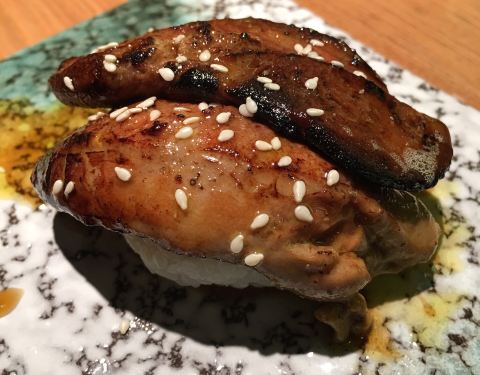 海胆饺子不错,汤也鲜。 鹅肝寿司一如既往的美味。 章鱼串很大只
