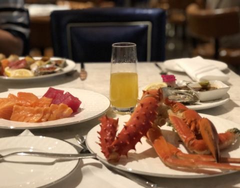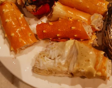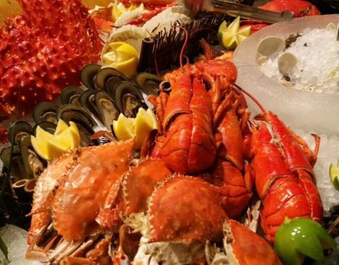 ...无论口味还是环境都是上乘,海鲜品种很多,龙虾肉很饱满,帝王蟹脚肉质紧致,日料也很多,牛排也很棒