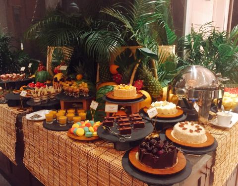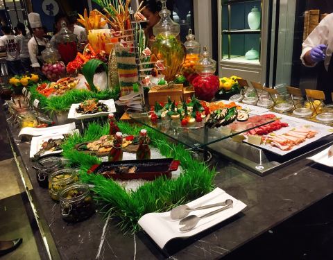 静安瑞吉是非常好的酒店,酒店大堂气派复古。第一次在这里吃自助餐,五星级的酒店环境和服务,最多三星的口味。双人的价格定价不高,估计很难要求食材原料有多好。烤肉和海鲜的口味极其一般,其中的青口贝和蟹腿简直到了难吃的程度;挽回面子的是甜品-芝士蛋糕、巧克力蛋糕奶油口味非常好,和位上的小鲍鱼。