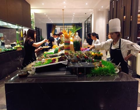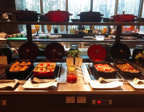 时尚现代的餐厅,严选新鲜食材制作自助餐。