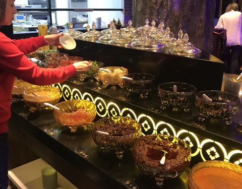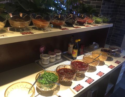 第一次吃到传说中的乌鸡卷,花色挺特别的,口感鲜嫩润滑。自助调理可以选择的余地很大,种类丰富,6元一人