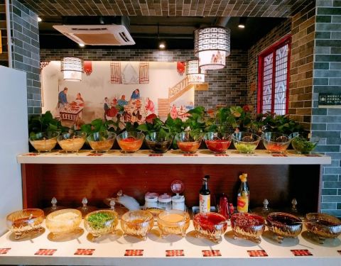 装饰很有成都特色的一家火锅店,价格比较亲民,味道也是不错的。点的是38元的锅底,里面有金针菇、海鲜菇、红枣、大葱等,挺清爽的。自助调理可以选择的余地很大,种类丰富,6元一人。第一次吃到传说中的乌鸡卷,...装饰很有成都特色的一家火锅店,价格比较亲民,味道也是不错的。点的是38元的锅底,里面有金针菇、海鲜菇、红枣、大葱等,挺清爽的。自助调理可以选择的余地很大,种类丰富,6元一人。第一次吃到传说中的乌鸡卷,花色挺特别的,口感鲜嫩润滑。还点了手工蛋饺、水饺、牛蛙、鸭血、三林塘肉皮,两个人吃得好撑,才花了157元。服务员有时比较粗犷,互相大声讲话,旁若无人,可以再改进下,其它方面都很满意。在他们家拍照特有灵感,我可是用了绳命创作了,哈哈,祝生意兴隆。