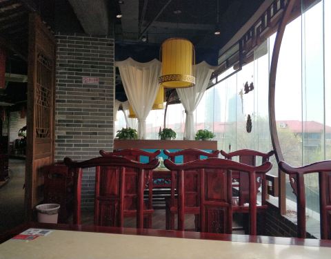 朋友中的霸王餐券,周末正好一起碰个面吃个饭。位置在海阳路靠近上南路口不到100米的地方,离家挺近的。装修古色古香,看上去还可以,一楼不大,就两张小桌三张大桌。一开始以为就一楼五张桌子,还在想这店也忒小...