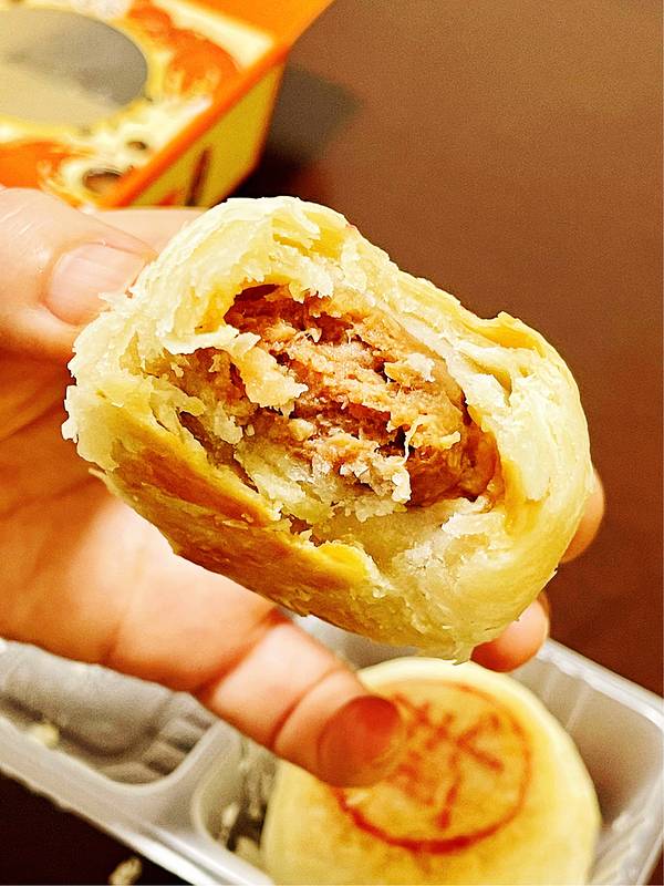 盒马的现烤鲜肉月饼,一小盒2只装,定价十一元;肉月饼皮酥、肉嫩,口味鲜美,适合当早点、下午点心,感觉品质很不错。