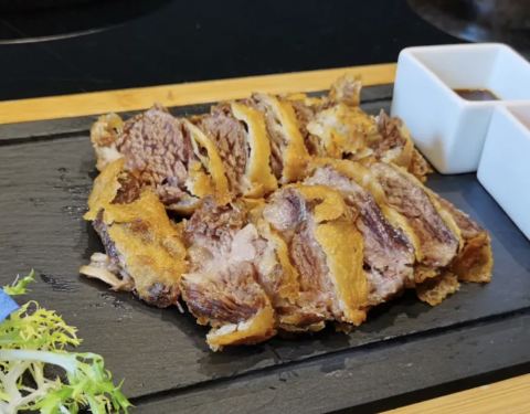 赵氏荣华园(魔方社区店),嘉定这里的一家挺精致的餐馆。香汁有机脆芹菜,果真特别脆;脆皮雪花牛肉,皮脆,肉蘸酱吃;三杯鸡味道也不错。