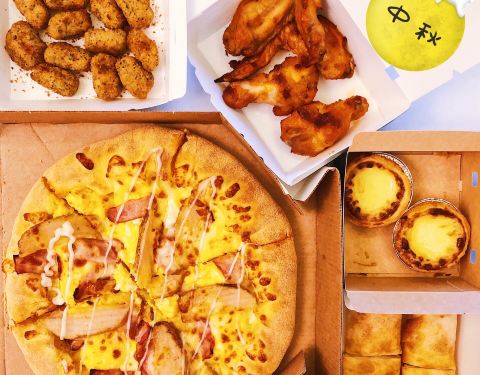 Domino’s Pizza好久不见 来比一比你和月亮谁更圆 旗舰人气的经典美国风情土豆培根披萨,酥香薯角和美乃滋酱配一脸,吹爆咸蛋黄风味流沙卷饼,咸蛋黄狂魔心花怒放好吃到停不下来 除了雷打不动的蜜汁烤翅,心血来潮地尝试了一下蛋香鸡肉卷,金黄酥脆的面饼皮类似春卷,包裹烟熏鸡肉丁和青豆,并佐以香浓幼滑的蛋黄风味酱,不过口味跟披萨颇有雷同。 酥嫩狭鳕鱼粒海苔风味油而不腻,只是面粉居多鱼肉微不足道,还有招牌蛋挞迷你大小一口吞掉。