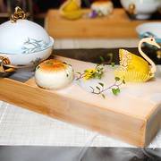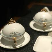 碗碟上是西湖胜景的画卷,三潭映月、断桥山水在餐具上徐徐展开。