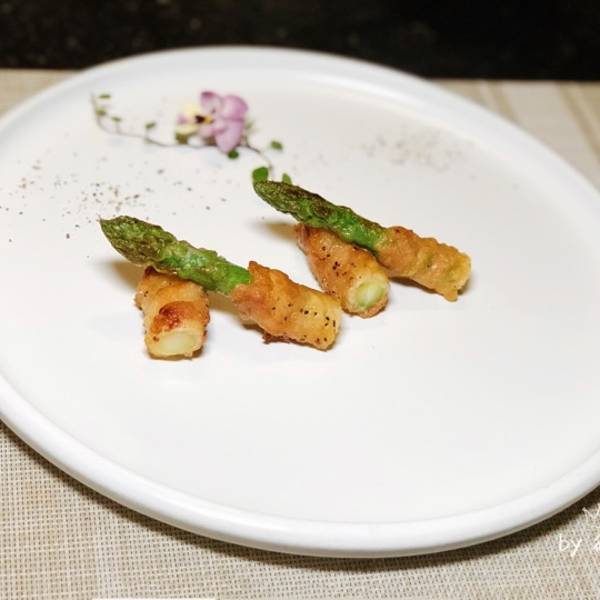 香煎芦笋卷 肥美的五花肉肉里包裹着清脆芦笋。