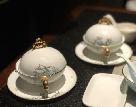 碗碟上是西湖胜景的画卷,三潭映月、断桥山水在餐具上徐徐展...碗碟上的江南风光,菜肴里的春水煮鱼。上海南站附近隐藏着嗲餐厅。环境禅意十足,古典气息浓厚。古筝、松柏、孔雀、竹木鸟笼。。。装饰上可见用心。