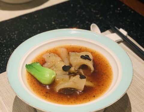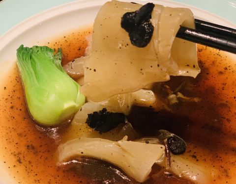 黑松露配花胶 大块花胶以高汤小火慢炖,又有黑松露的美味加持,鲜到眉毛掉下来。花胶酥软可口,满满的胶原蛋白。