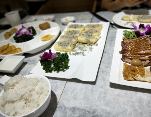 马戏城真的很久没来了,上次来大概还是读大学的时候吧[笑哭] 这家餐厅🍴离地铁站有点远,不过地段还是不错的,对面就是居民区,旁边是工作园区,生意蛮好的; 古色古香的中式风格设计,仿红木的桌椅,看着还满大气上档次的; 点了份招牌的人气精选三拼💰168,鹅翅、鹅肝和鹅肉,肉质细腻鲜嫩,都很好吃,量也蛮大的; 主食选了点击率蛮高的炒米粉💰28,料满丰富的,炒的也入味,这样一份,一个人完全吃不完,它家的量真的实诚; 打包方式很不错,都是盒子装好再密封,打包盒2块/个!