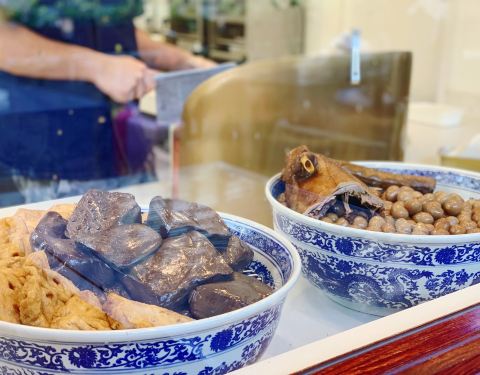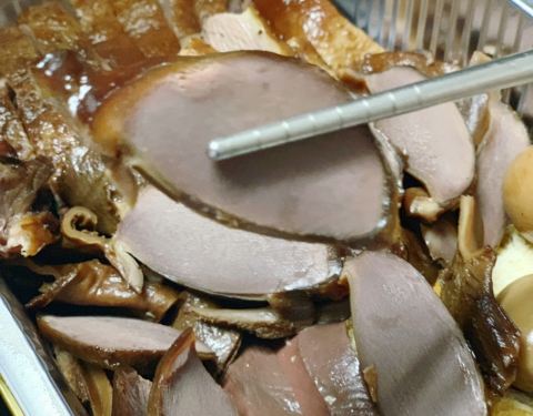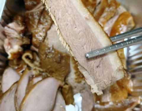狮头卤鹅是潮汕传统名菜 狮头鹅头大而眼小 鹅头是整只鹅的精华 甚至比鹅身还贵 越老的鹅头越大,肉越多 这家沿街的“鹅将”潮汕卤水 现切配狮头鹅 当然五拼可贵了 「鹅肉拼鹅胗」 考究的包装 配有卤水&醋 光看鹅胗就感觉整只鹅是有多大 鹅肉特香