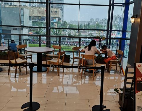 这家必胜客就在我们青浦的宝龙广场里面的哦,进大门的地方,地理位置优越,疫情防控力度挺大的这家店,进门洗手,生意还是挺好的