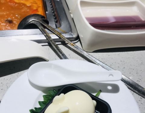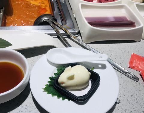 很久没吃海底捞了,感觉酱料改进了好多。这次我们选了4宫格,比较意外的是骨头汤里豆皮简直太多,让我们怀疑是不是自己点过一份。还点了抖音同款油面筋塞鸡蛋虾滑,感觉很一般啊。面筋都煮软了,里面才熟。