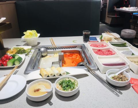 稍微排了会队,再看看身后满满的等位区,不幸中之大幸。很多菜可以点半份,这样可以选择更多菜品。在这里主要还是享受服务,锅底一上来,小哥哥就配了2碗特制的番茄汤,浓汤加牛肉丁加芹菜末,味道很赞。还体验了...