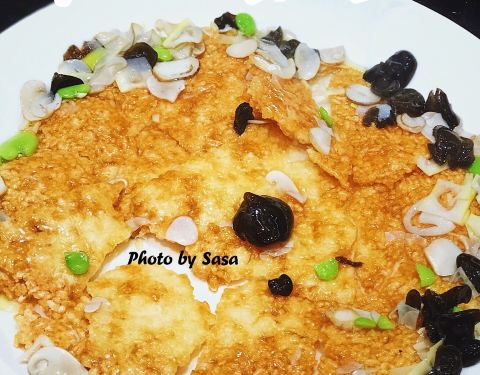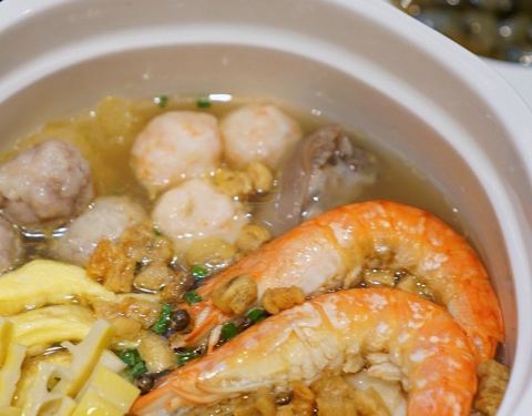 之前年夜饭就是在这家吃的 对他们家菜品的印象非常好 这次朋友聚餐 依然选择来这里吃 马兰头香干 这个菜品是店里刚推出的春季新菜 色泽碧绿 吃上去清新爽口 作为一道饭前开胃菜真的是非常不错 秘汁熏东海小白鲳 这道菜几乎是每桌必点的 原材料使用的是小白鲳而非平时所见的乌青鱼 酱汁浓郁 肉质鲜嫩 味道甜甜的 很不错 老兴鲜全家福 虾球+肉圆+蛋饺+肉皮+鲜笋+鸡肉 汤底是经过八小时熬制出来的浓汤 味道鲜美 食材种类丰富 一锅下肚 感觉超满足 初一锅巴 这个虽是赠送的 但却也无敌的好吃 吃之前在香脆的锅巴上浇上全素浇头 锅巴滋滋作响 口感香脆 吃一口便已爱上