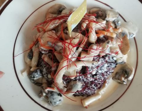 友情提示:必须预约。微信点餐并支付成功后才算预约成功。 大概在小鱼山和康有为故居中间的位置,就在小鱼山下来正对的那条路上,进院子后一直往上走,店面不大,挺清新的一家小店,一中午就四桌。 饭菜品相不错,味道的话就仁者见仁智者见智了。我感觉那个大虾沙拉和昆布火锅还算是实至名归的。金枪鱼牛油果饭里的金枪鱼酱拌着饭很好吃,但是牛油果太硬了,不好吃。意面里的牛肉丸个别的偏咸,总体肉质有点紧硬。白酱菌菇饭味道蛮香浓的,但是感觉少点滋味。所有的饭里都是黑米饭,米饭太多配料相对少,黑米饭偏硬,吃了很实落。年糕我觉得一般般,孩子喜欢吃,吃了不少。