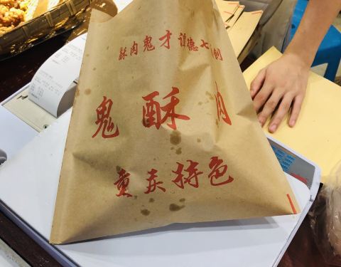 来重庆必须尝一下酥肉,这家号称排名很高,晚上快十点还在排队。酥肉当地炸出来的,中份20一袋,量还挺大的。 实物感觉一般般其实,面粉很厚重,肉倒里纯精肉,但面粉盖过了肉味。 店门口看到大桶大桶深色油,可能油一般。