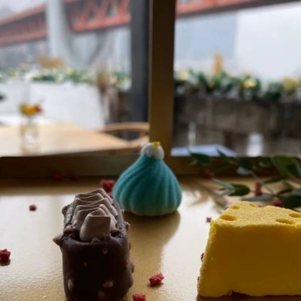 龙门浩老街现在已经成了一个西餐下午茶的聚集地。江景,东水门大桥,飞驰而来的轻轨,过江索道慢悠悠的荡向对岸,还有远处的江北嘴,来福士和喜来登。重庆最好的风景,都在这里。 对西餐没什么研究,粗暴的认为除了沙拉牛排意面披萨饼之外,其他的都好吃...所以一般都避开这几样主食来点,屡试不爽,这些我叫不出名字来的,还真的多好吃的。 黑松露焗饭很香浓。红茶普普通通。