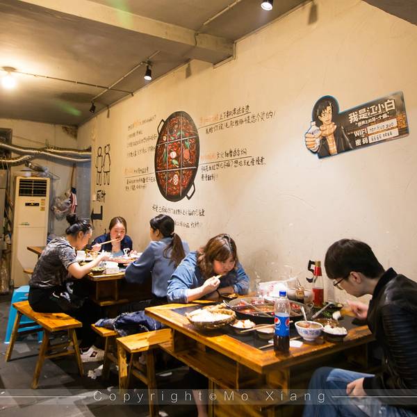 店面不大,店内装修依然保留着老重庆的市井,墙上有涂鸦,在重庆吃火锅,吃的就是这口江湖气