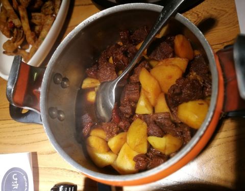 之前就想去吃,近期抽空去拔草。周末的晚上去的,人好多,排了二十分钟的队终于进来了。环境还不错,桌子一个接一个,入座之后,桌子上面还有点油,自己擦的。服务员很少,半天叫来一个,服务意识也不强。看网友推荐的菜,不少都想吃,点了一份沸腾鱼和几个小菜,无奈过了十分钟,服务员突然说没有原材料了,然后圈掉了一些菜,又的重新点菜。看邻桌点了灯影土豆丝,土豆丝切的很细,十分酥脆,很大一盘。酱香牛肉,就是切片的卤牛肉,很劲道,直接吃味道很普通,蘸上配的酱料,味道还不错。点了份杨梅酒,酒味重,草莓的甜味不够。另外还点了芝士红薯和鼎汤时蔬,等了半个多小时一直不上菜,真不知道鼎汤时蔬这种完全不需要炒的菜为什么上菜也这么慢。直接要结账,才赶忙把菜端上来。但是已经等饱了,直接退掉了。整体来说菜的味道都不错,服务比较差,点菜传菜的衔接太差。