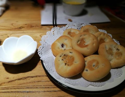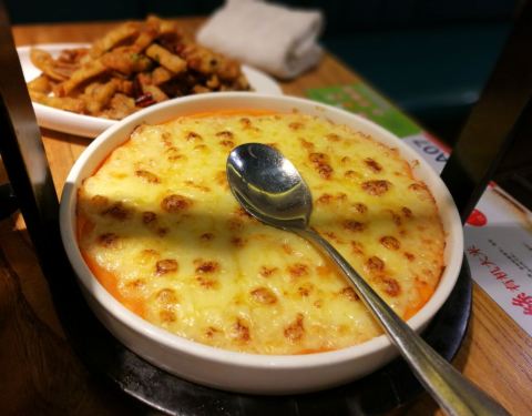 - 花椒煸藕夹有点麻辣,开胃了;芝士焗番薯用的无盐黄油,芝士很厚,也不是很甜,这点很好