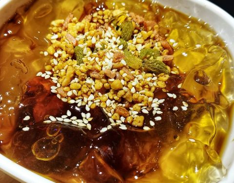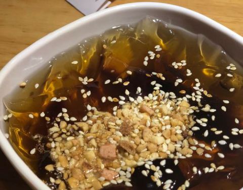 *冰粉,搅拌过后挺好吃的,尤其吃完辣的再吃这冰冰凉的甜品,果然很搭。第一轮的不辣汤的味道更好些