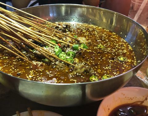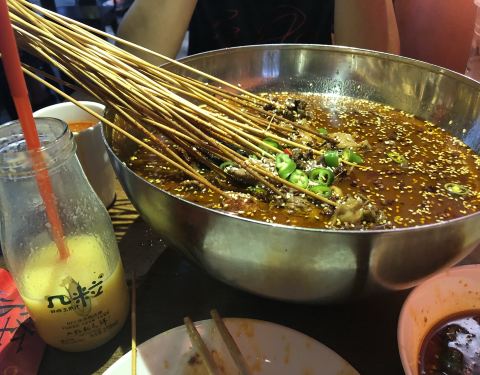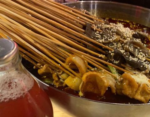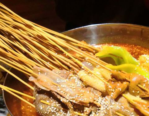 非常非常火的一家串店,排队经常要排几十桌。有多种口味可以选择,价格很实惠,一百块钱可以吃五十多串。因为是川菜,比较辣,即使是微辣也会非常辣。