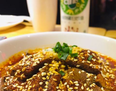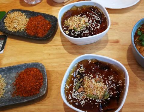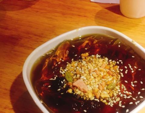 - *冰粉,搅拌过后挺好吃的,尤其吃完辣的再吃这冰冰凉的甜品,果然很搭。第一轮的不辣汤的味道更好些