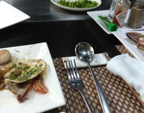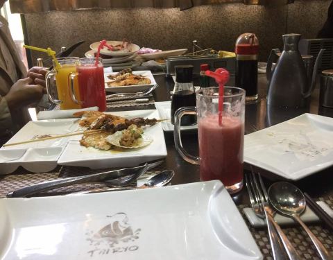 大渔铁板属于比较中高档的自助餐厅了,有服务员点餐,感觉上菜速度不是很快,胃口大的有些跟不上,虽然也不限量,总体评价平平。