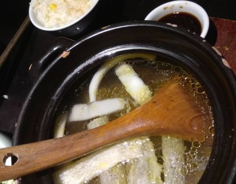 位于永旺二楼的美食街,环境非常好,一副江南水乡的景 象,服务员也都穿着古典纱裙。绿茶葱香烤鸡鸡肉香嫩,外酥里嫩,有点辣,不错。