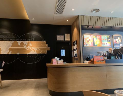 由于住在附近,隔了一天,又来这家星巴客了。从地铁的出口出来没几步就到星巴客,对面就是武汉体育中心。来这店时,看见里面座位挺多的,但基本上已经坐满了,可见这店还是蛮受欢迎的。店里的环境还不错,比较安...