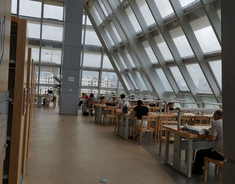 里面很好,书多,各国的小说都有,啥花卉种植,情感研究都有,从以前的图书馆边变更大了,自习的位置也够大够多了,快到下午时人会比较多,一般都是早早去才有位置,说明人爆满啊,还有一些没位置的都跑到旁边的24小时自助图书馆里了,那真是一个座位都不剩,棒极了,里面是免费开,还有空调,充电口,nice