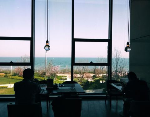 环境不错哦,但是大堂酒廊不能直接出去走到大海那边了,人不少。烟台的污染挺严重的,海也不蓝,天空一层雾霾,能见度很低,海边的空气不如山里。
