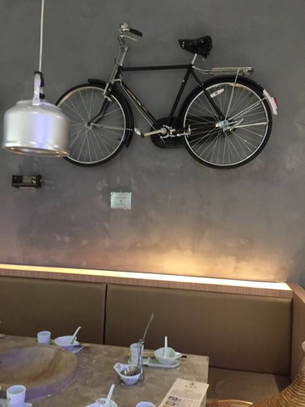 鱼尚鲜 环境 超复古的80年代的设计风格,很多小时候的自行车,收音机,电视剧,算盘等怀旧元素装饰物。 给人感觉挺清新自然的,灯是烧开水的壶子,很有个性。 主打草帽蒸汽石锅 个性的蒸汽,刚开始消毒就有蒸汽了...