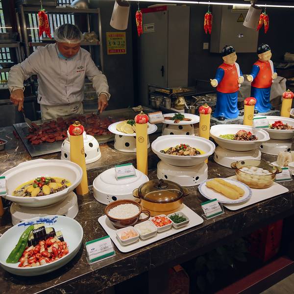详细地址:南洋镇大洋湾景区外唐渎里美食街 推荐菜品:特色涨蛋糕、红烧刀子鱼、青菜烧牛肉等。 餐厅环境:环境很大气,金碧辉煌的感觉,明档点菜,所见即所得。 人均消费:80元/人 餐厅总分:90分 在盐城人的心目中,“八大碗”永远排在舌尖之上。农家烩土膘、红烧糯米圆、萝卜烧淡菜、鸡丝烩粉丝、涨蛋糕、芋头虾米羹、家常红烧肉、红烧刀子鱼。八大碗半汤半菜,碗大凸显北方的豪爽,半汤半水显出南方的细腻。 在盐城宴请宾朋,“盐城八大碗”一直是招待的最高规格。 “盐城八大碗”在盐城市区有好几家店,这次吃的是位于景区门口的一家店,作为景区里的饭店,口味和性价比真的是很好了!推荐前往。
