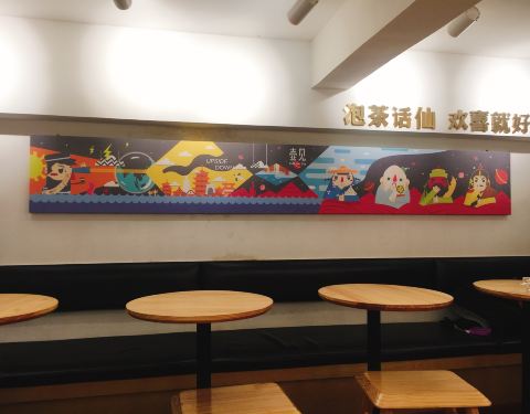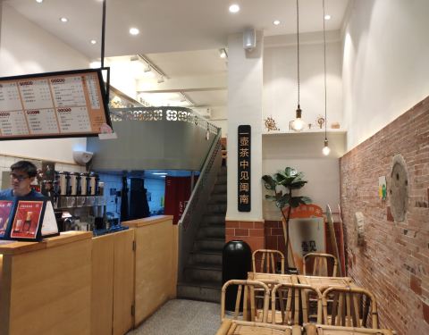 芋波霸鲜奶,也是好喝极了。红砖墙,竹桌椅等闽南元素到处可见,就连饮品名也多带有闽南语音