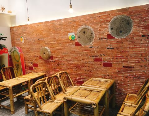 还是极具闽南特色的装修风格,竹椅、红砖,点上一杯来话仙