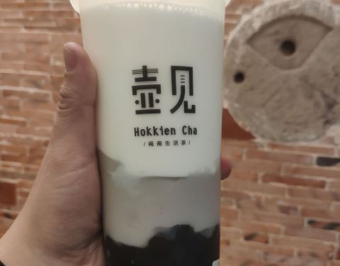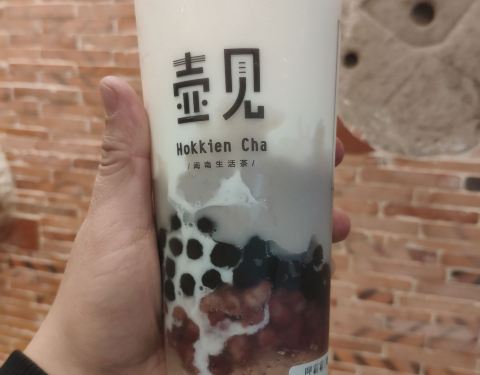 壶见华大店位于去学生街的入口不远处,旁边是古茗。 学生街的店铺都看起来挤在一起,但壶见不会,很好利用了空间,共两层。红砖墙,竹桌椅等闽南元素到处可见,就连饮品名也多带有闽南语音。 点了杯甲霸霸,鲜奶底,奶味十足,加石花膏,红豆,芋泥和珍珠。石花膏闽南特产,很爽滑。红豆也加工足够甜软,芋泥喝前要摇一摇,让整杯都有股芋香,口感也甜甜的,珍珠软又富有嚼劲,很不错。 芋波霸鲜奶,也是好喝极了。