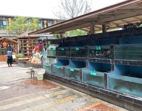 来成都住在新都区保利公园皇冠假日酒店,中午朋友带着去附近的六合渔村吃饭。饭菜味道还好,就是感觉服务员一心推销利润高的菜品胭脂鱼。已经明确表示我们两个人吃不了两三斤的鱼,不想点鱼,还是热情过度地说找领导允许卖给我们2斤的,按照一斤半收费。不好意思也不想再纠缠了,只好答应。鱼很快上桌,虽然鱼肉新鲜,但是明显感觉不是现在炉灶上出锅的。心里感觉真是不舒服,饭店的服务员宗旨实在不欣赏。