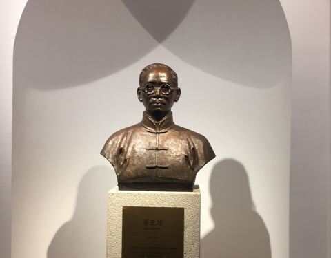 ...加入,屋顶和梁柱的彩绘非常大气很有中国风的感觉,进门处左右有两尊铜像,分别是董大酉和蔡元培先生