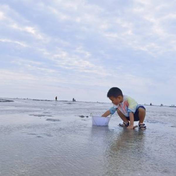 带孩子来赶海太棒了!特别宽阔的滩涂,没有任何污染,非常干净!孩子从来没玩过,非常开心!特别是抓竹节蛏,特别逗!适合拍照!领队大姐和小妹人都特别好,注意防晒呀!
