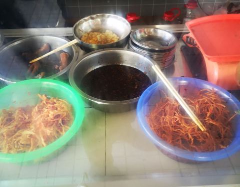 这次同事们出差勐海,就在他们家老仓醋米线店门口的小广场上做建设,几乎每天早上都是去他们家吃早点,醋米线的确很好吃,醋很好喝。