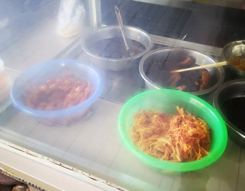 ...类的盖饭,浇饭,还有炒菜和凉拌,盖饭有鸡肉盖饭很好吃,茶叶蛋也是好吃的,小炒肉盖饭也是很好吃的