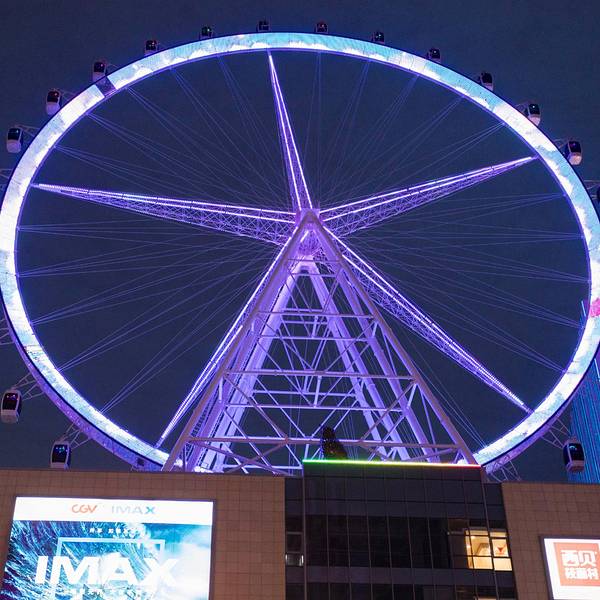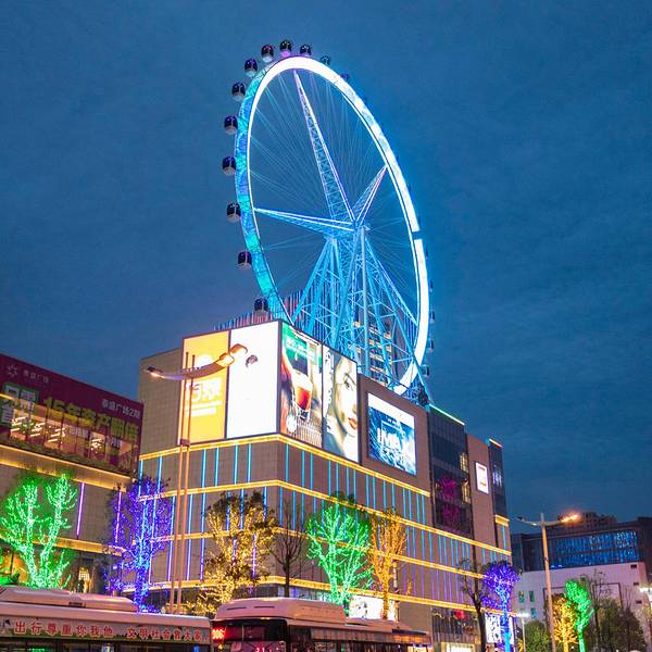 ...是临沂最大、最潮的购物商贸中心,其楼顶架着一个巨大的摩天轮,在全国来说都算罕见,入夜之后特别美